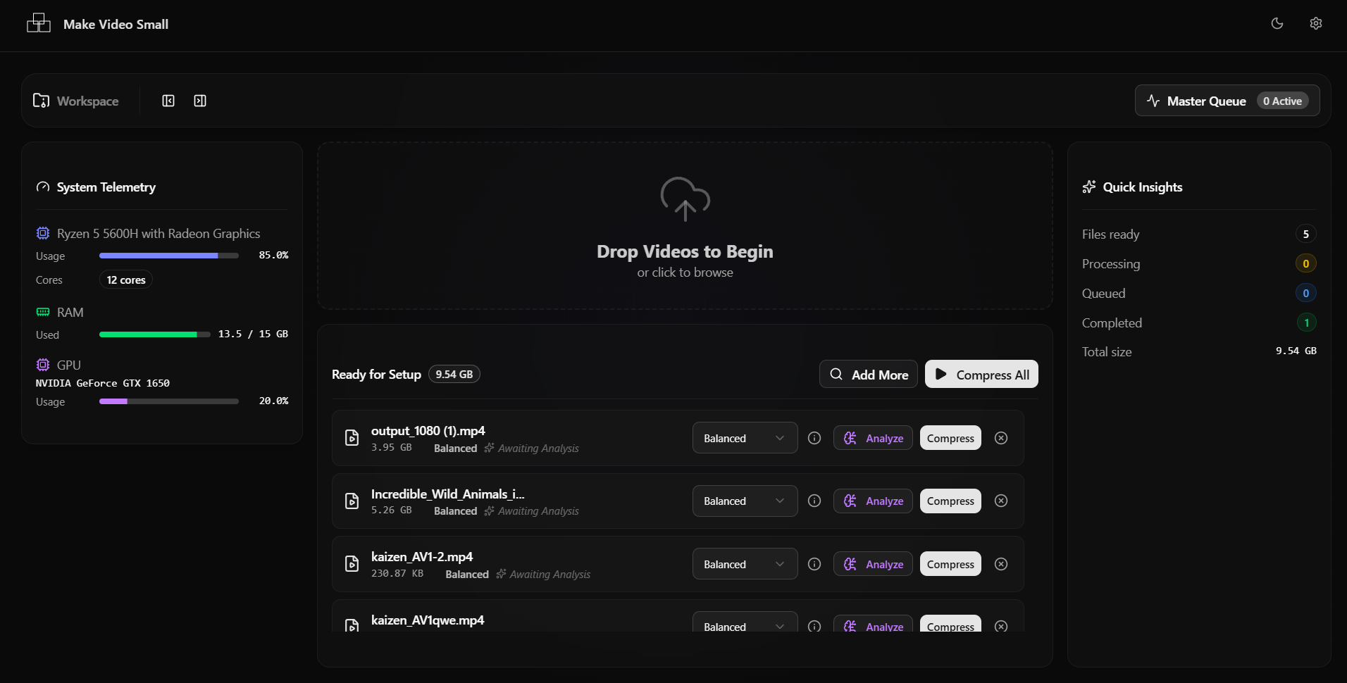Drop an entire folder of massive .mp4 files and walk away.